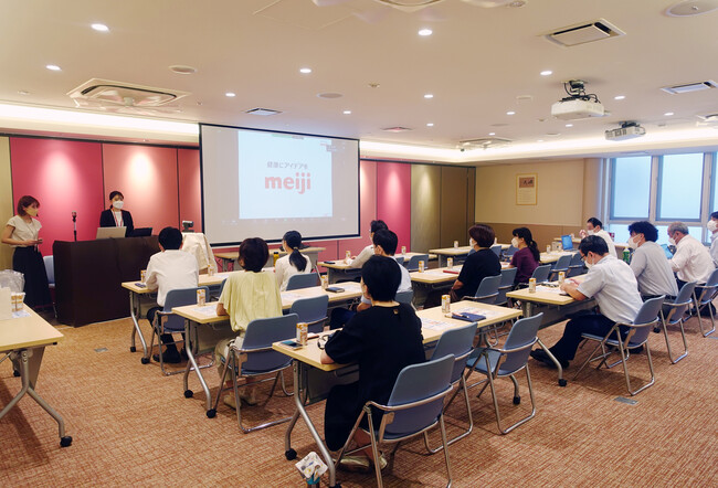 ヘルスリテラシーを向上させ、仕事において十分なパフォーマンスを発揮してもらえるように、「健康なカラダづくり」と「食の楽しさ」をテーマに、株式会社明治の方を社内にお招きし、就業時間内で2022年9月26日(月)と10月24日(月)の2回にわたり「食育セミナー」を開催しました。