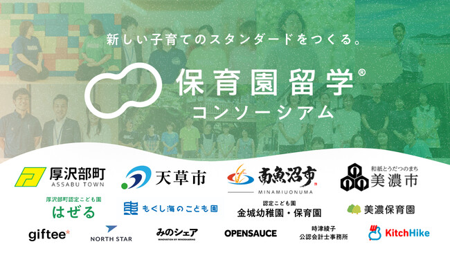 地域と子育て家族をつなぎ、未来をつくる留学プログラム「保育園留学(R)️」を軸に、全国地域が連携して新しい子育ての可能性を創造する「保育園留学(R)️コンソーシアム」が設立されました。メンバーとして、実施地域である北海道檜山郡厚沢部町、熊本県天草市、新潟県南魚沼市、岐阜県美濃市の全国4市町、受け入れ園である認定こども園はぜる、認定こども園もぐし海のこども園、認定こども園金城幼稚園・保育園、認定こども園美濃保育園、事業連携する株式会社ギフティ、株式会社ノーススター、みのシェアリング株式会社、株式会社OPENSAUCE、時津綾子公認会計士事務所、株式会社キッチハイクが参画。設立にあたって第一回総会を執り行い、特設ページを公開しました。