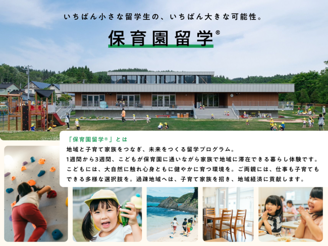 1.地域と子育て家族をつなぎ、未来をつくる留学プログラム「保育園留学(R)️」:https://hoikuen-ryugaku.com/