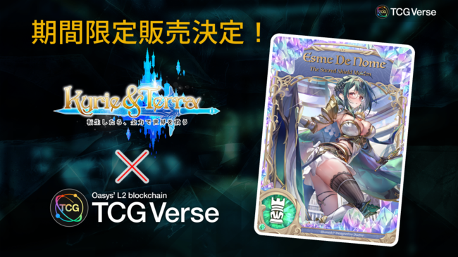 ブロックチェーンゲームを開発するCryptoGames株式会社(東京都渋谷区、代表取締役:小澤 孝太)は、運営するOasysのL2ブロックチェーン「TCG Verse」は、株式会社カイカフィナンシャルホールディング(東京都港区、代表取締役:鈴木 伸)が運営するGameFi専門のNFTマーケットプレイス「Zaif INO」にて、Center to Seconds(タイ王国,バンコク 、CEO:Apiwat Goganoot)が提供する新作Web3ゲーム「Kyrie & Terra」の限定NFT4種類を販売が決定したことをお知らせいたします。