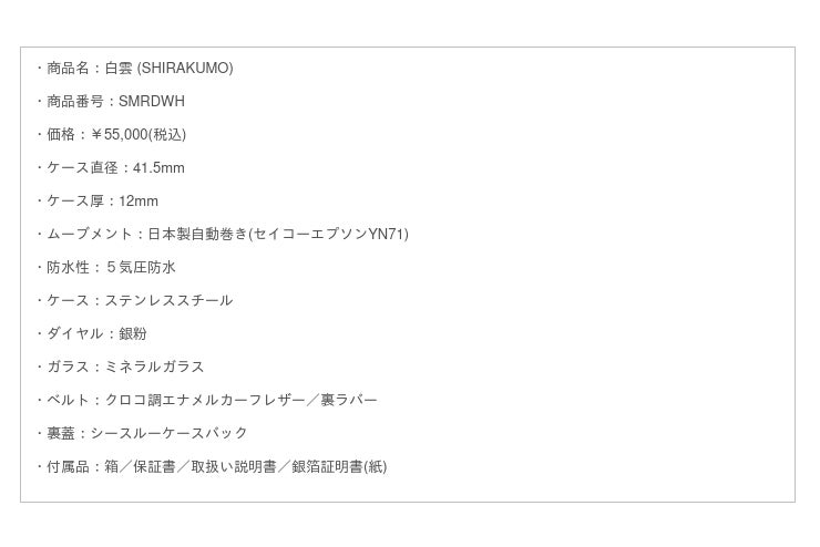 ※全ての時計に石川県箔商工業協同組合発行の銀箔証明書が付属します。