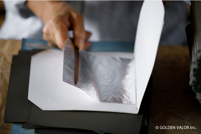 400年以上前から金沢で脈々と受け継がれている伝統的な技法を用いて、熟練の職人が作り出す金箔をはじめとした金属箔です。金沢箔コレクション第一弾の『銀箔』シリーズの腕時計では、西陣織の帯などに使用されている引箔(ひきばく)という箔押しの技術を用いて生産されています。また今回使用しているのは『銀箔』の他に『着色銀箔』という銀箔を燻したり、着色したりする技法を使用し色を表現。『金沢箔』特有の豪華な輝きを放ちながらも、表情豊かなカラーリングは、機械式腕時計の文字盤に美しさと華やかさを添えています。