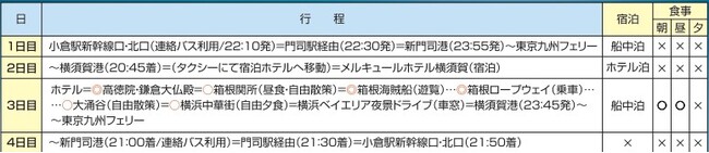 【新門司発】移動だって楽しめる!船旅だから旅がより非日常に♪<団体ツアー>箱根・鎌倉・横浜を巡る旅4日間 発売!