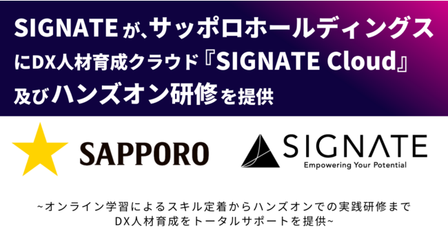 SIGNATEが、サッポロホールディングスにDX人材育成クラウド『SIGNATE Cloud』及びハンズオン研修を提供
