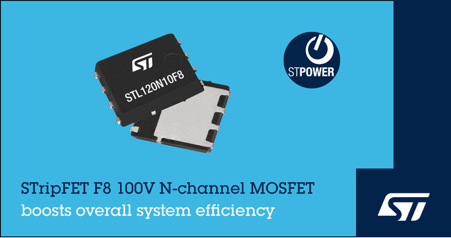 STマイクロエレクトロニクス(NYSE:STM、以下ST)は、100V耐圧のNチャネル型パワーMOSFET「STL120N10F8」を発表しました。同製品は、ゲート・ドレイン間電荷(QGD)とオン抵抗(RDS(on))がきわめて低く、同等の従来製品と比べて性能指数(オン抵抗 x ゲート電荷)が40%向上しています。