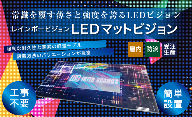 装飾業界のプロフェッショナル企業である株式会社インターコスモス(本社:大阪市北区、代表取締役社長:作道 洋介)は、厚さ10mmの超薄型!12kg/平方メートル の超軽量!!なのに驚きの強度!!【LEDマットビジョン】の販売を開始した件についてお知らせします。