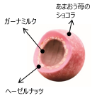ホイップショコラのふんわり軽い口当たりとともに、ヘーゼルナッツの香ばしい味わいとマカダミアナッツのコク深い味わいが口の中に広がります。