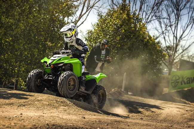 純粋にオフロード走行を楽しむことができるKFXシリーズ。オフロードに必要なパワーとスポーティなサスペンションにより、子供がオフロードを楽しむ新たなツールとして活躍します。
