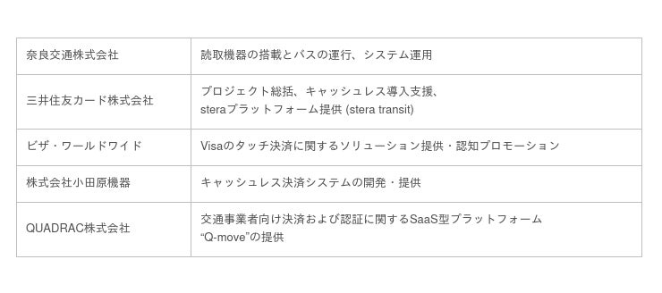 奈良交通株式会社(本社:奈良県奈良市、代表取締役社長:森島 和洋)、三井住友カード株式会社(本社:東京都江東区、代表取締役社長:大西 幸彦)、ビザ・ワールドワイド・ジャパン株式会社(本社:東京都千代田区、代表取締役社長:スティーブン・カーピン)、株式会社小田原機器(本社:神奈川県小田原市、代表取締役:丸山 明義)、QUADRAC株式会社(本社:東京都港区、代表取締役社長:高田 昌幸)は、奈良交通株式会社が運行する奈良市内循環線において、Visaタッチ決済の実証実験を開始することを以下の通りお知らせします。
