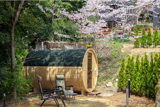 四季折々に表情をかえる木々に囲まれた大自然の中、都会の喧騒から離れ、心地よいそよ風を感じながら過ごす非日常を満喫するグランピング施設です。春の敷地内に咲き誇る60本もの桜と、深緑の緑に包まれ自然と一体となる春のアウトドア体験をお楽しみください。