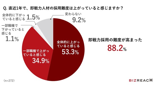 ■88.2%が直近1年で即戦力人材の採用難度は高まったと実感