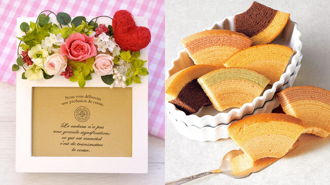 同プランの宿泊対象期間は2023年5月8日(月)~5月14日(日)です。対象施設は、山中湖畔からすぐの立地が魅力の「Rakuten STAY VILLA 富士山中湖」、客室から富士山が望める「Rakuten STAY 富士 河口湖駅」(いずれも山梨県)、約20種類の異なる部屋タイプを取り揃えた「Rakuten STAY VILLA 那須」、日光東照宮をはじめとする日光の観光に便利な「Rakuten STAY 日光宝殿」(いずれも栃木県)、室内で天然温泉が楽しめる「Rakuten STAY VILLA 箱根仙石原」(神奈川県)、プライベートサウナを完備した「Rakuten STAY VILLA 鴨川」(千葉県)の6施設です。同プランに付けられるギフトは、「楽天市場」の「楽天ショップ・オブ・ザ・イヤー」(注1)においてスイーツジャンル賞を16年連続で受賞した(注2)「おいもや」の和・洋菓子詰め合わせと花束セット、ならびに花ジャンル大賞を2年連続で受賞した(注3)「flower kitchen jiyugaoka」のフラワーフォトフレームとスイーツセットの2種類から選ぶことができます。また、室内は同プランの利用にあわせて母の日の特別な装飾が施されます。対象の6施設はすべて無人運営、かつ1棟貸しの部屋も多く備えているため、プライベート感あふれる非日常の空間で、人気のギフトとともに日ごろの感謝を伝えることができます。