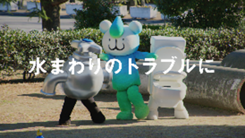 「修理の東京ガス 水パッチョ仲裁」篇では、水まわりのトラブルをめぐって公園でもめている「ジャグチくん」と「トイレくん」の間に「水パッチョ」が入り、仲直りさせる姿をほのぼのと描いています。