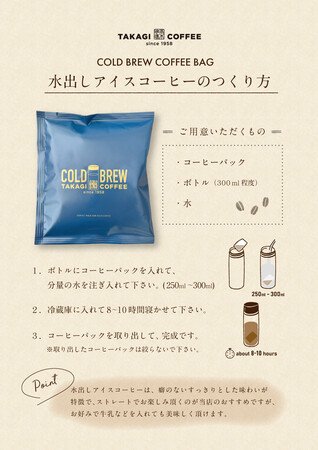 高木珈琲では夏に向けてコールドブリューパックをご用意しています。