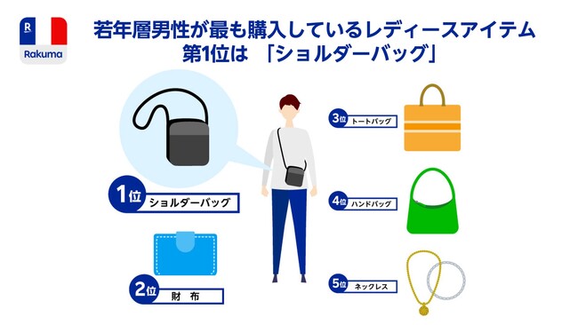 また、10代・20代男性に実際に売れている「レディース」カテゴリは、1位「ショルダーバッグ」、2位「財布」、3位「トートバッグ」、4位「ハンドバッグ」、5位「ネックレス」で、ファッション小物が人気であることがわかりました(注)。本調査では、10代・20代の男性ユーザーを対象に背景を探っています。