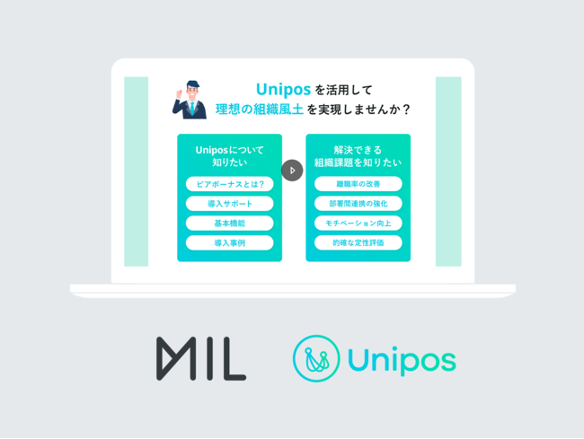 MIL株式会社(本社:東京都新宿区、代表取締役社長:光岡 敦、以下「MIL」)は、Unipos株式会社(東京都渋谷区、代表取締役社長CEO:田中 弦、以下「Unipos社」) にインタラクティブ動画マーケティング「MIL」を導入いただいたことをお知らせいたします。
