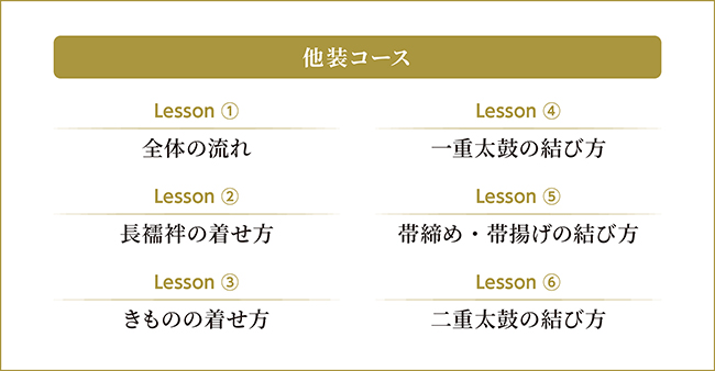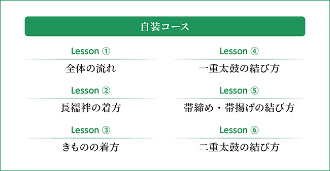 全6レッスンに分けて、きものの着方を説明しています。