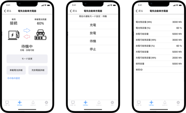 ■「UCHITAS」の電気自動車充放電器のリモコン操作画面イメージ