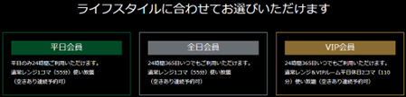 あらゆる会員様に楽しみながらゴルフ上達を目指していただける充実のサービスを取り揃えております。 VIP個室完備 無料クラブ・グローブ・シューズレンタル 無料駐車場完備(2時間半まで) 無料駐輪場完備 左右打席3打席完備 クラブが入る貸しロッカー完備(オプション) マンツーマンレッスン(オプション) ラウンドレッスン(オプション) 料金 月9,900円から通える平日会員プランを含む3種類のプランをご用意!あなたの目的やニーズに合わせてお好きなプランをお選びいただけます。現在月会費永久割が適用されるお得なオープン前キャンペーン中!キャンペーン詳細はHPをご確認ください。