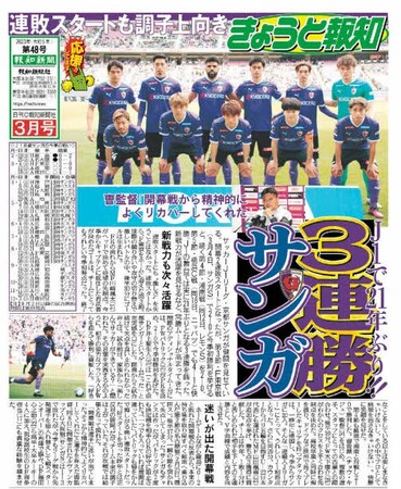 サンガ3連勝!「きょうと報知3月号」31日(金)発行