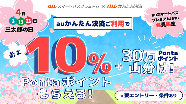 2023年4月もおトクな3日間を!【auスマートパスプレミアム会員】なら三太郎の日に「auかんたん決済」ご利用で最大10%Pontaポイント還元
