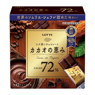 「カカオの恵み 72%」は、カカオ本来のおいしさをしっかりと引き出し、“コク深く、ほの甘い”美味しさにこだわった、カカオ72%の高カカオチョコレートです。チョコレートの厚みまで徹底的にこだわり、口どけと一枚の満足感の最適なバランスを追求しました。高カカオチョコレートのおいしさを存分にお楽しみ頂けます。