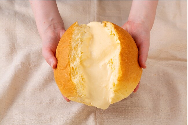 大きくてびっくり『びっくりーむパン』は、八天堂のくりーむパンの一番人気のフレーバー「カスタード」のビッグサイズです。そのままかぶりつくのはもちろん、大人数でのシェアや、クリームやフルーツをトッピングしてお好みのアレンジで飾り付けなど、様々なシーンでお楽しみいただけます。本商品は4月1日にエイプリルフール企画として配信した八天堂公式SNS(Twitter・Instagram)の嘘みたいなびっくり商品から着想を得て考案しました。
