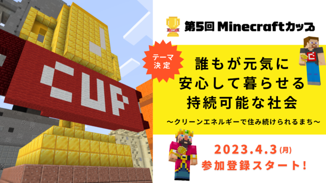 Minecraftカップ運営委員会は、世界各国の教育現場で活用されている教育版マインクラフト(Minecraft Education)を使った作品を国内・世界から募集し、内容を競い合う大会を運営。18歳以下の子どもたちを対象に、デジタルなものづくりに触れられる機会の創出を目指しています。大会では毎回、SDGs目標を盛り込んだ作品テーマを設け、今大会は「誰もが元気に安心して暮らせる持続可能な社会 ~クリーンエネルギーで住み続けられるまち~」に決定しました。