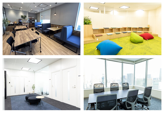 新オフィスは、従業員が増える中でコミュニケーションが活性化しやすく、働きやすい環境を意識した空間づくりとなっています。気軽に人が集まれるオープンスペースやリラックスしてコミュニケーションを取れるリフレッシュルーム、それぞれが集中して生産性を高められる個室に23Fの見晴らしが良い会議室などを備えています。