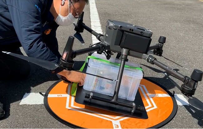京都府長岡京市にて、災害用食料品のドローン配送の実証実験を実施
