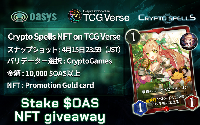 ・配布日:4/30 23:59までにOasys L2のTCG VerseチェーンのNFTとして配布予定。