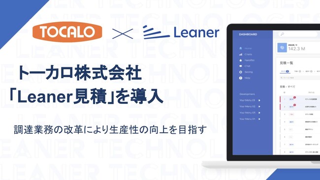 株式会社Leaner Technologies(本社:東京都品川区、代表取締役:大平裕介)はトーカロ株式会社(本社:兵庫県神戸市、代表取締役 :社長執行役員三船 法行)の調達部門において調達力を強化して、収益性向上を実現する「Leaner見積」が導入されたことをお知らせいたします。