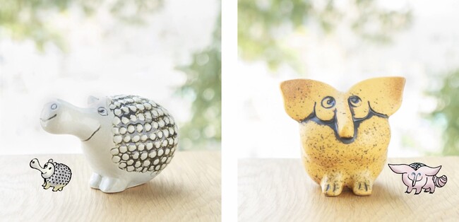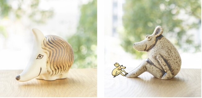 「あんしんあにまるず。=Unseen Animals」は、リサ・ラーソンが架空の動物をテーマに作った4体の陶器作品がオリジナルです。それぞれみんな違っていて、みんな愉快で、何だか心が通じあえる、お守りのような動物たちです。オリジナルの4体は、今回の展覧会のために限定生産されました(※展覧会会場限定での販売となります)。