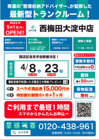【西梅田大淀中店/5月1日(月)オープン】見学から契約、解約まで完全非接触・非対面、お申し込みからご利用まで最短1時間!都内、大阪などにて絶賛運営中のトランクルーム【スペラボ】が副町駅近くに出店!