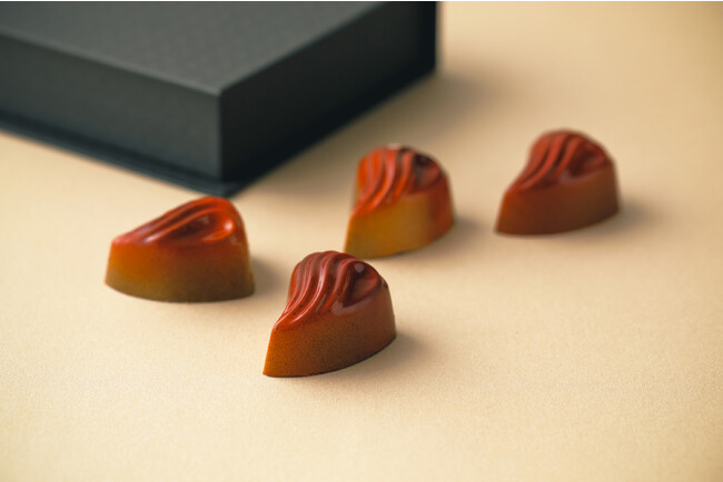 当アフタヌーンティーをお召し上がりいただいたお客様限定でご購入いただける「ほうじ茶のボンボンショコラ」。艶のあるチョコレートの中はほうじ茶が香るミルクチョコレートと、ガナッシュクリームを閉じ込めました。