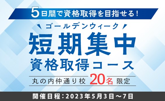 たった5日間で認定資格の取得が目指せる『短期集中資格取得コース』をゴールデンウイーク(5月3日~7日)に、丸の内仲通り校にて 開講いたします。