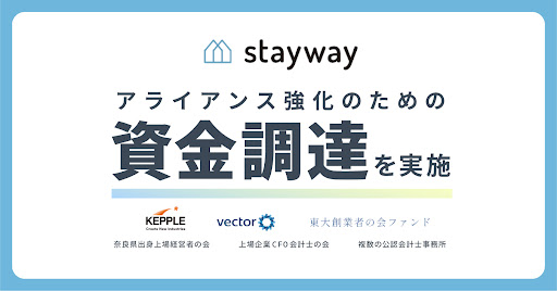 補助金のDXを推進する「補助金クラウド」を提供する株式会社Stayway(本社:神奈川県川崎市、代表取締役: 佐藤 淳、以下「Stayway」)は、ケップルDXファンド、株式会社ベクトル、東京大学(UT) 創業者の会投資事業有限責任組合、奈良県出身上場経営者の会、上場企業CFO会計士の会、複数の公認会計士事務所、個人投資家を引受先とする第三者割当増資により、約1億円の資金調達を実施しました。