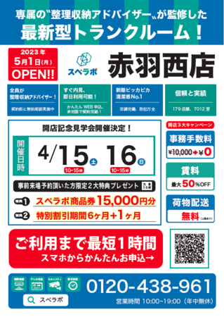 【赤羽西店/5月1日(月)オープン】見学から契約、解約まで完全非接触・非対面、お申し込みからご利用まで最短1時間!都内、大阪などにて絶賛運営中のトランクルーム【スペラボ】が赤羽駅近くに出店!
