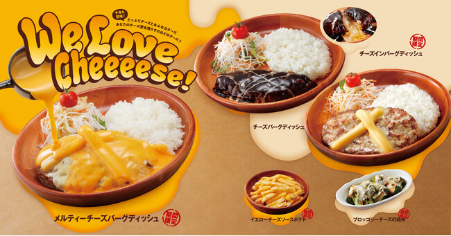 この時期しか食べられない毎年大好評のチーズ好きにはたまらない「We Love Cheeeese!」フェア。今フェアでは定番商品人気No.1のチーズバーグディッシュに加え、4種のチーズメニューが期間限定で登場します。