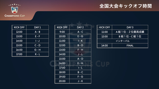 予選は4チーム×3ブロック(各チーム予選3試合)