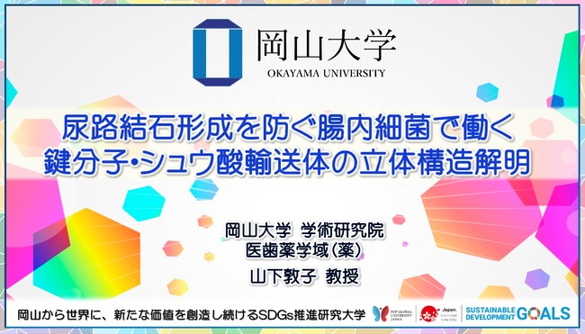 【岡山大学】尿路結石形成を防ぐ腸内細菌で働く鍵分子・シュウ酸輸送体の立体構造解明