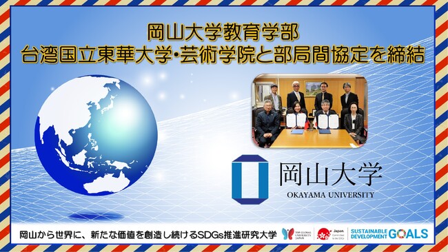 国立大学法人岡山大学(本部:岡山市北区、学長:那須保友)教育学部は、台湾国立東華大学・芸術学院(College of The Arts・National Dong Hwa University)と部局間協定を締結しました。