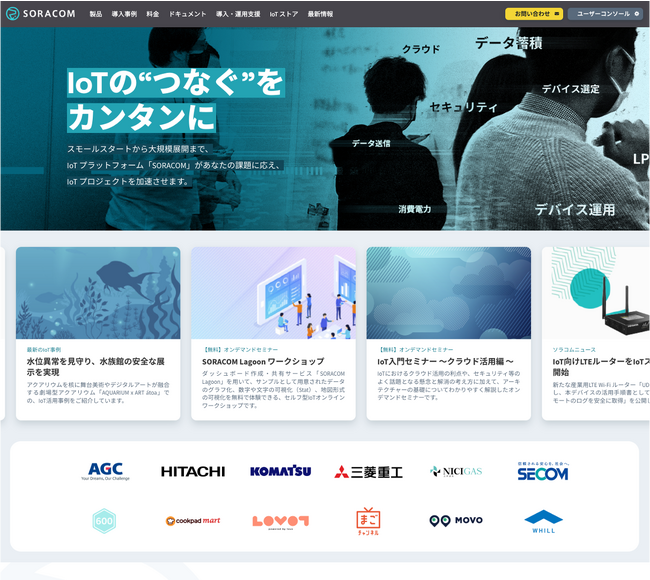 IoTプラットフォームSORACOMは、IoT システムを構築・運用するための IoTプラットフォームです。デバイス/通信/クラウドのノウハウでIoTにまつわる問題解決を支援します。
