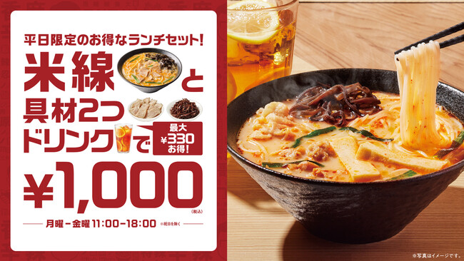 概 要:「米線+具材2つ+ドリンク」セットを1,000円で提供
