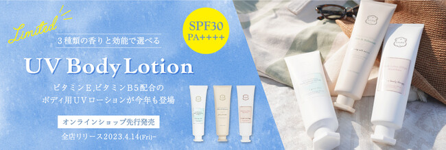 昨年、発売後すぐに完売となった、”3種類の香りと効能で選べる”ボディ用UVローションが今年も登場。