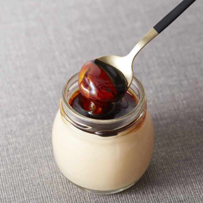 宮城県産の低温殺菌牛乳、北海道産の生クリーム、有精卵と無精卵を絶妙に配合した卵に、甜菜糖、三温糖、和三盆、藻塩、マダカスカル産のバニラビーンズだけというシンプルな材料を使い、濃厚でクリーミーなプリンに仕上げている。