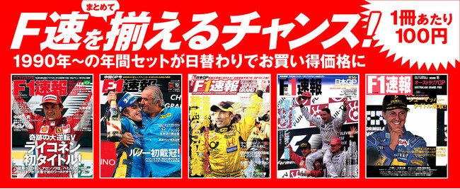F1グランプリを詳細なレポートと美しい写真で魅せる『F1速報』(電子書籍)のシーズンセットが1冊あたり100円となる日替わりセールを実施中【4/7~22】