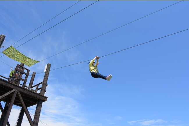 空中に張られたワイヤーロープを、滑車を使って滑り降りる人気アトラクション!往復400mの爽快アクティビティで、まるで空を飛ぶような感覚が楽しめます。