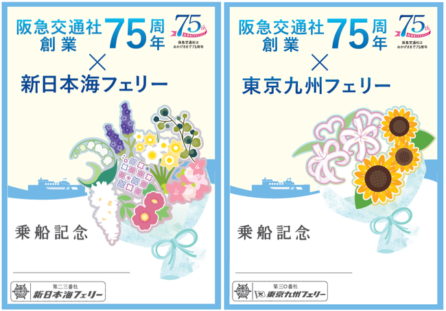 大好評の、船長サイン入りの御船印。阪急交通社75周年を記念して、新日本海フェリー・東京九州フェリーでは特別デザインを制作!