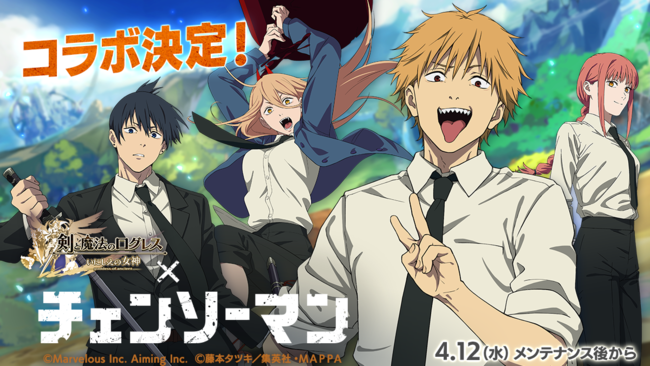 株式会社マーベラス(代表取締役社長:佐藤 澄宣/所在地:東京都品川区)は、スマートフォン向け本格オンラインRPG『剣と魔法のログレス いにしえの女神』において、2023/4/12(水)から「ログレス」×TVアニメ「チェンソーマン」コラボ開催が決定したことをお知らせいたします。